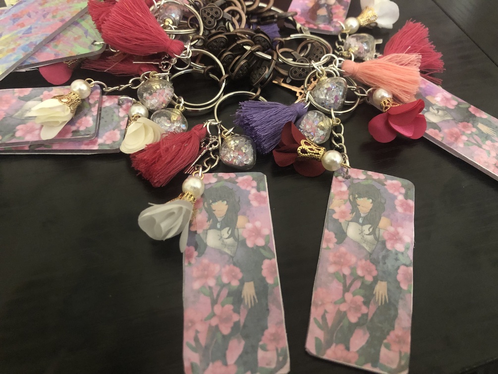 Printed acrylic keychain itself is 3cm x 7cm